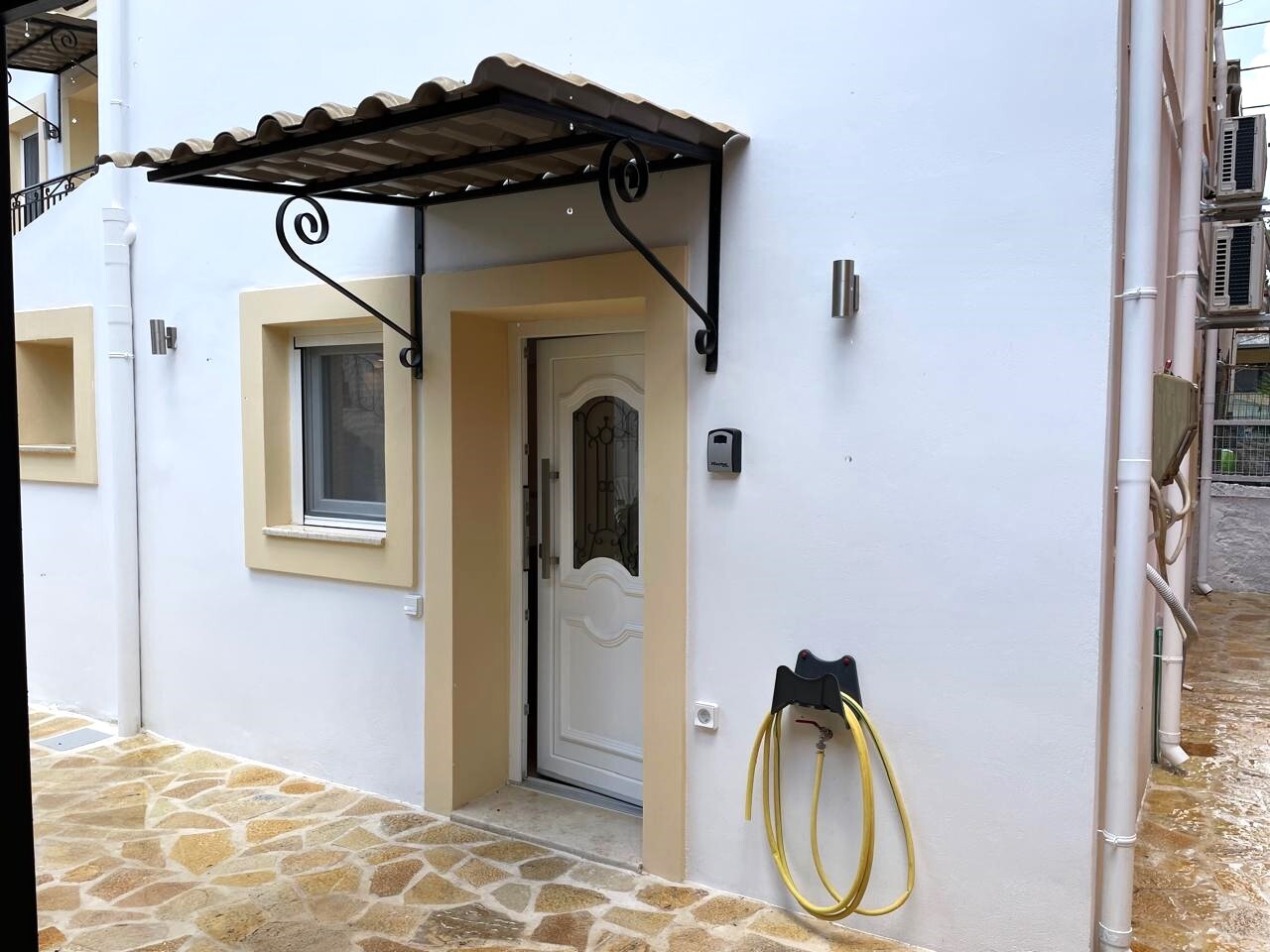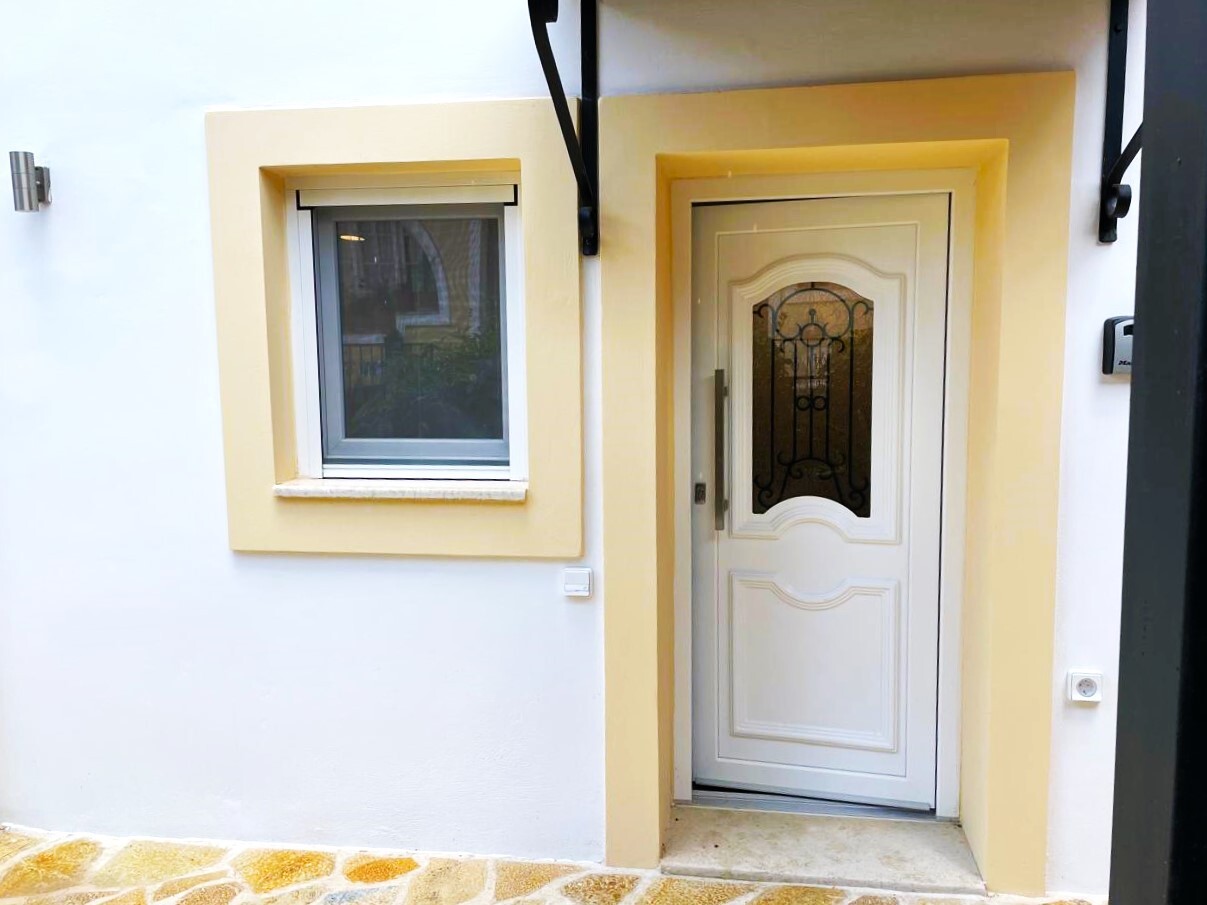 Дом расположен в активном районе рядом со всей инфраструктурой: таверны, бары, мини-маркет. Он находится недалеко от центральной пристани для яхт, через дорогу находится супермаркет, а также автобусная остановка.