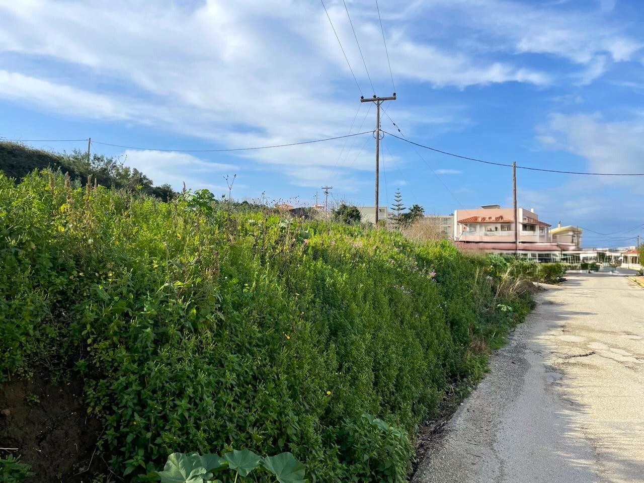 Участок имеет небольшой уклон, находится немного выше уровня дороги, с хорошим и легким доступом и в пешей доступности от моря и удобств поселка.