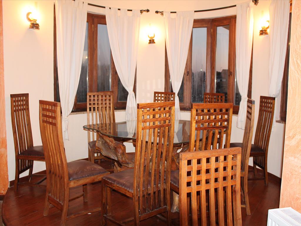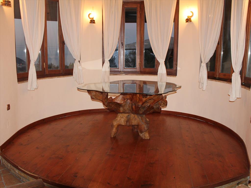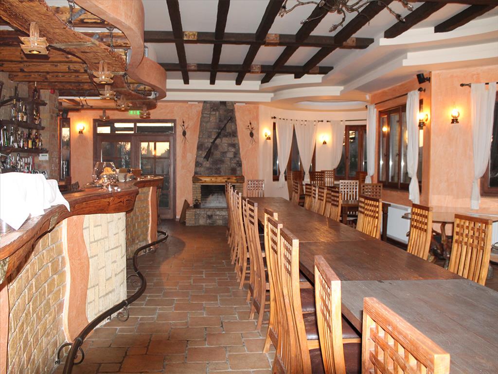 Здание построено в 2008-ом году, имеет площадь 200 кв.м и 800 кв.м веранду, а также есть возможность построить ещё 200 кв.м (второй этаж). Установлено газовое отопление, есть 2 камина.